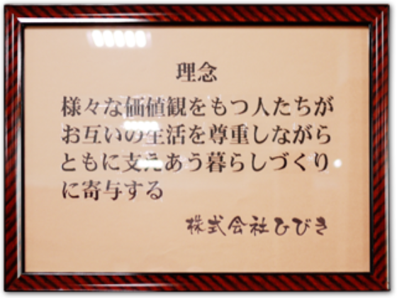 株式会社ひびきでは、安心、安全が確保され自由で穏やかに、そしてともに支え合う暮らしづくりを皆様に提供できるよう努めております。